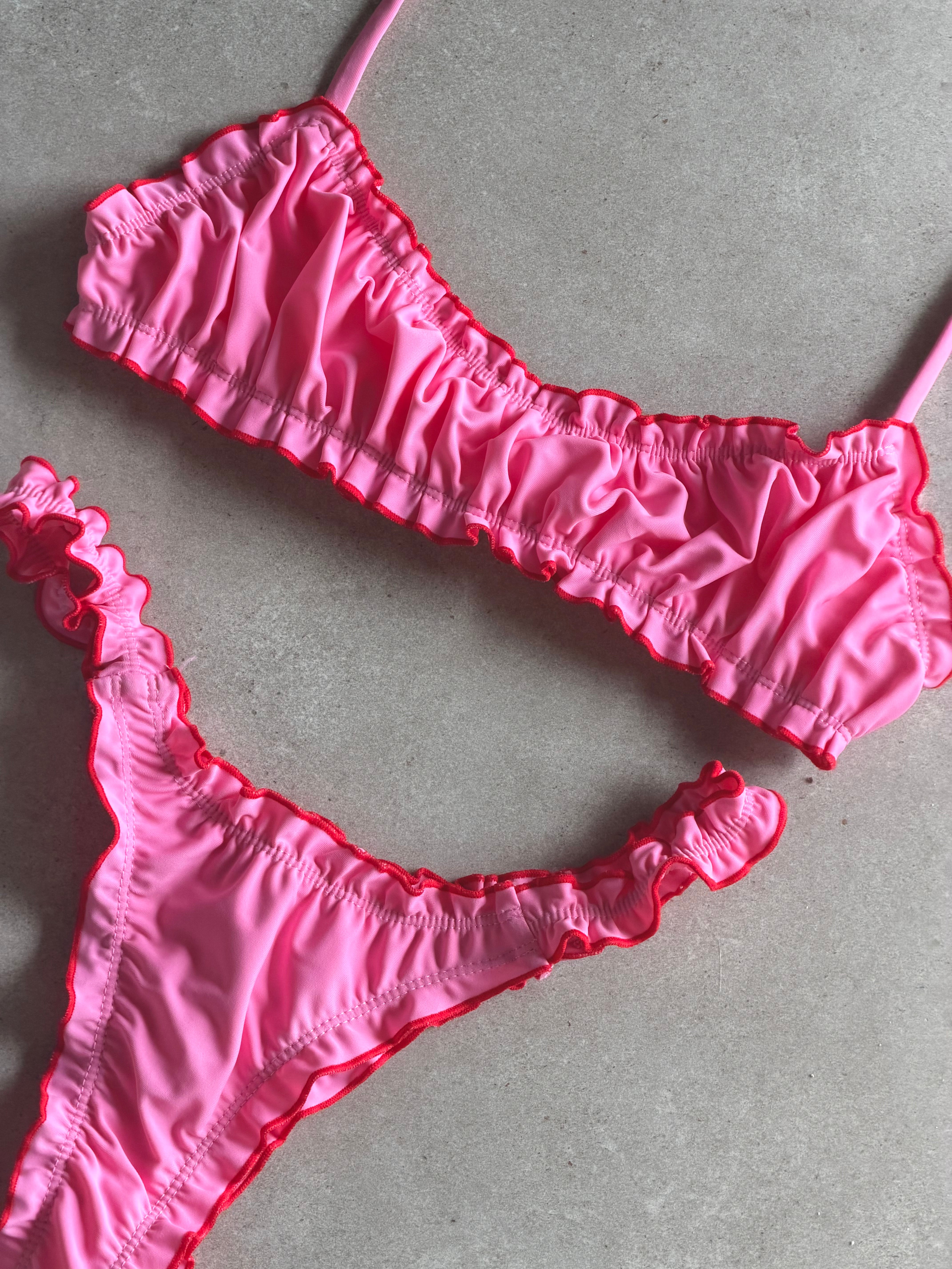 The Lovina Top is a flirty halter-neck silhouette with a demi-style shape and a secure clasp back. Delicate frilled edges add playful charm, while the lifting design provides gentle and flattering support for the girls. Cute, unique, and effortlessly fun, this top brings a playful, feminine energy.