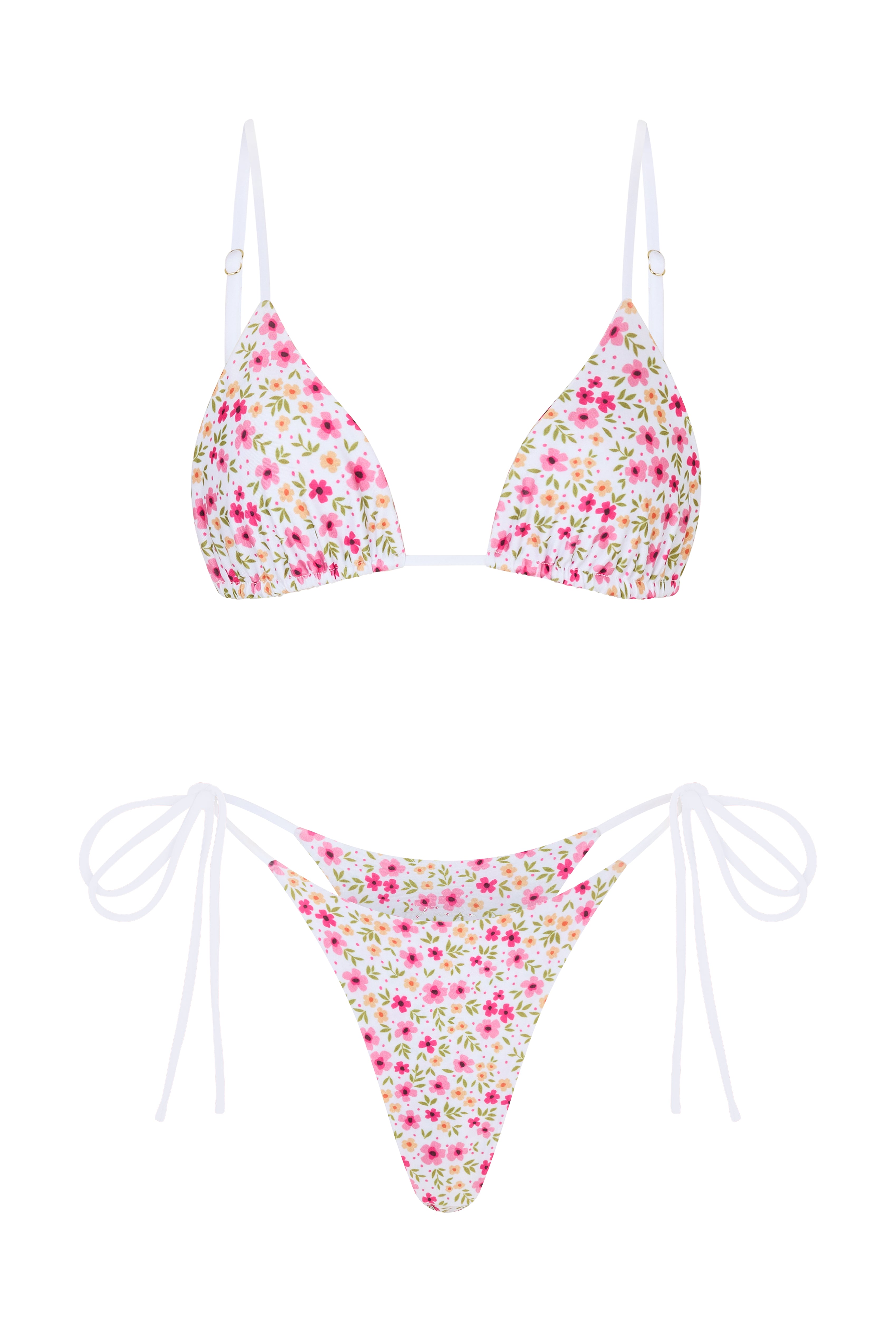 The Helio Top features sliding cups with thin, rounded over-the-shoulder straps and a tie-back closure. Designed without a halter neckline, it takes pressure off the neck for a lighter, barely-there feel. Pairs perfectly with the Helio bottoms.